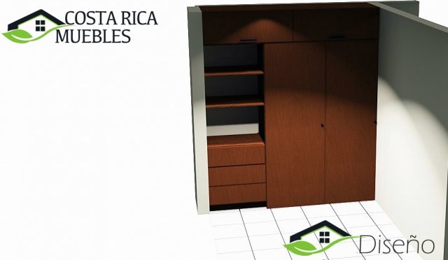 Fabricado Melamina hidrófuga 18mm. Closet sistema puertas corredizo y módulos de maletero y oficina con apertura con pistón.