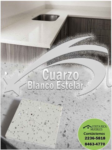 Rieles telescópicos, bisagras cierre lento, Tiraderas rellenas, Rodapié tipo aluminio. Sobres Cuarzo Blanco Estelar