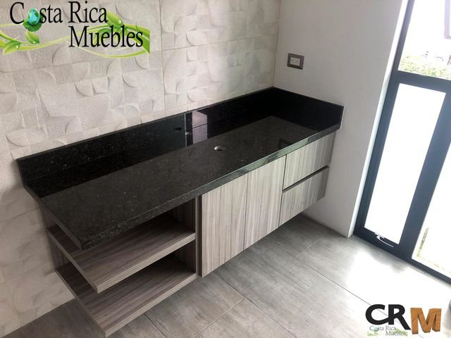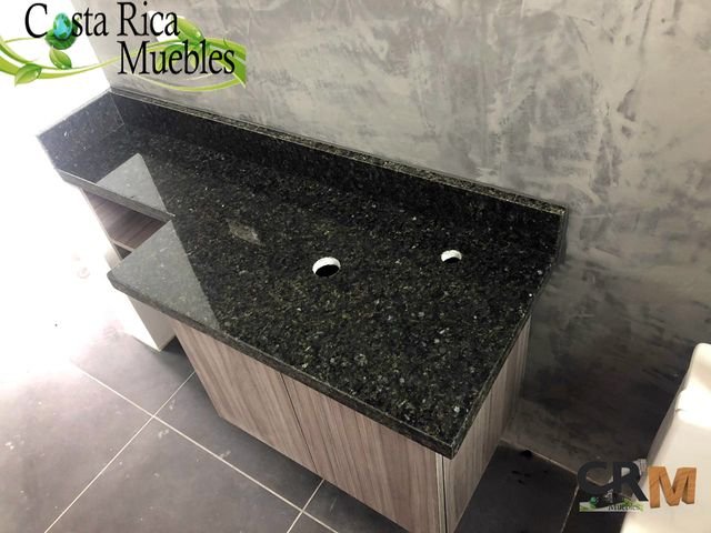 Muebles en Melamina Humo con sobre Granito Natural Verde Ubatuba